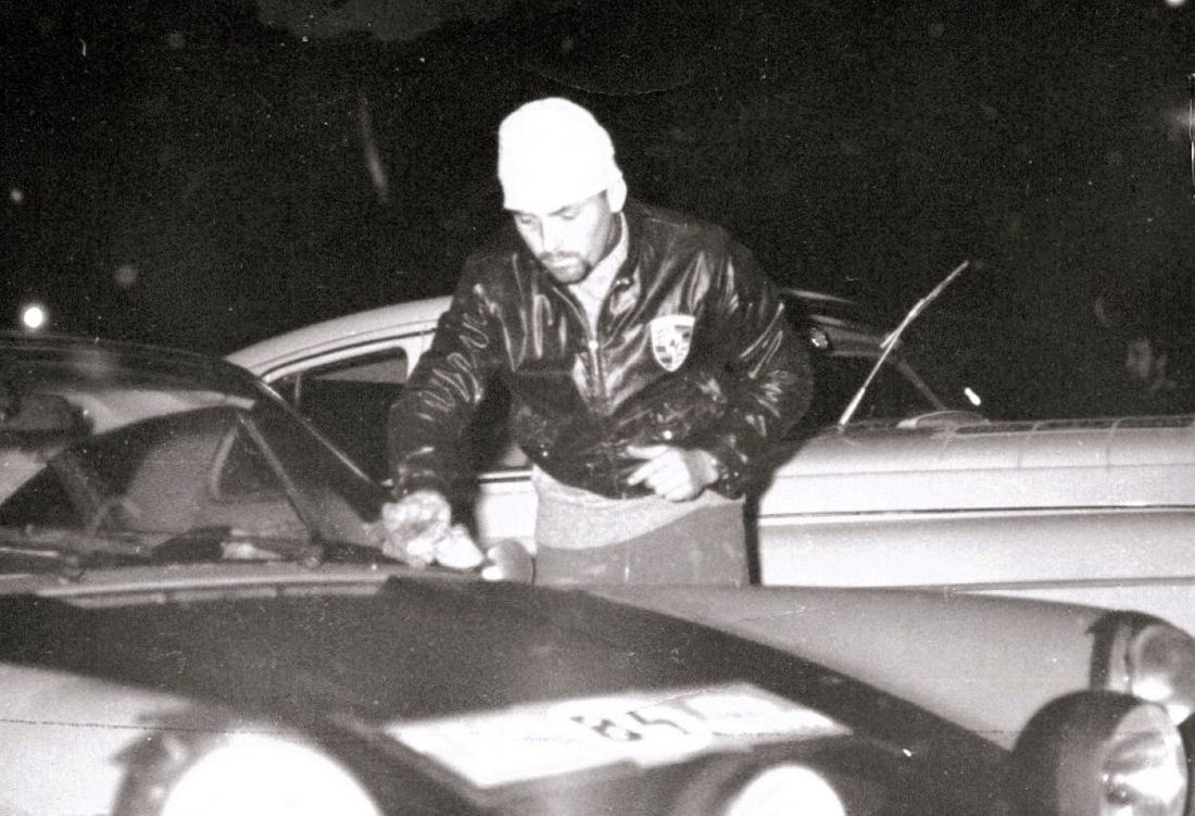Nr 84. Porsche 911 załogi: Marian Bień / Zygmunt Wiśniowski, Marian myje szybę