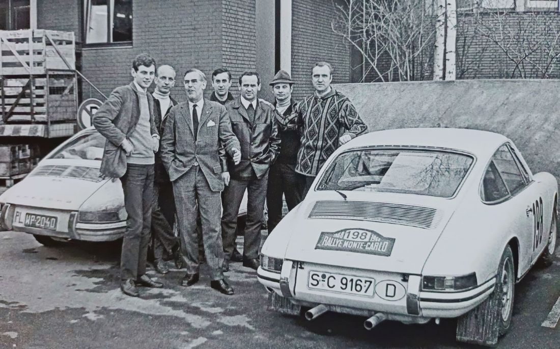 W środku Marian Wangrat z prawej Włodzimierz Markowski ksywa Dyzio, polska załoga Porsche 912.