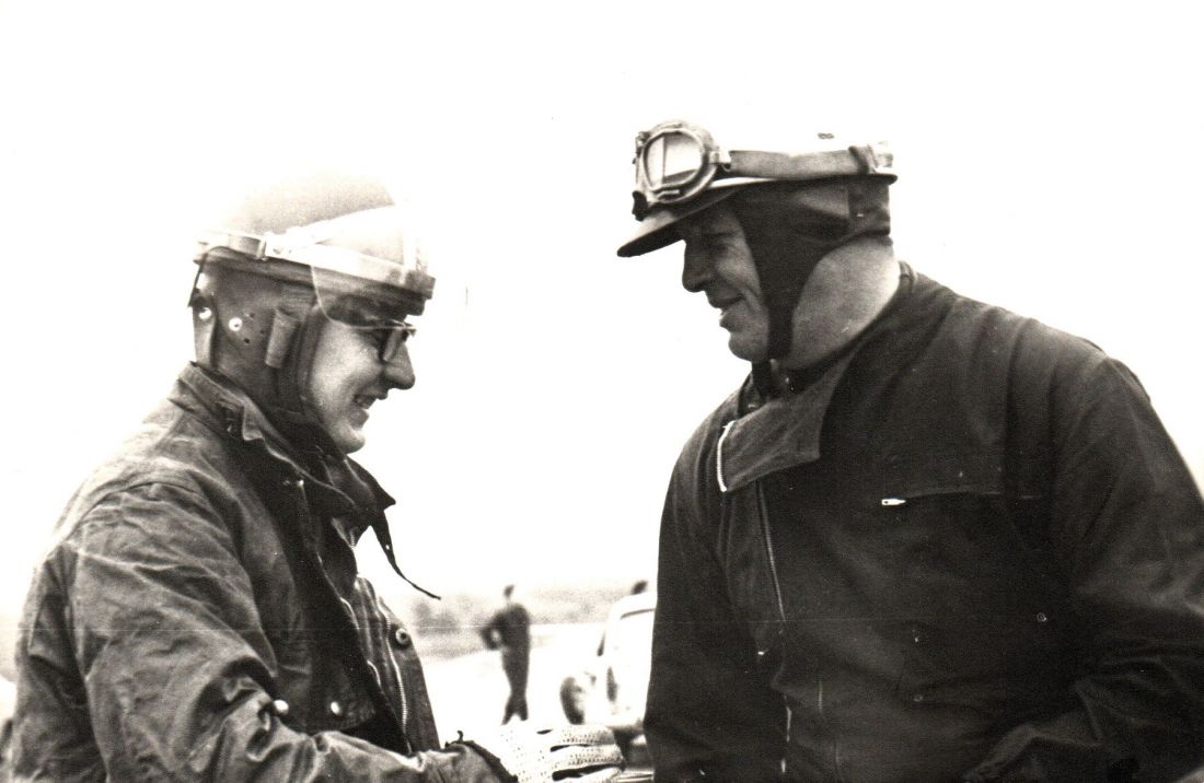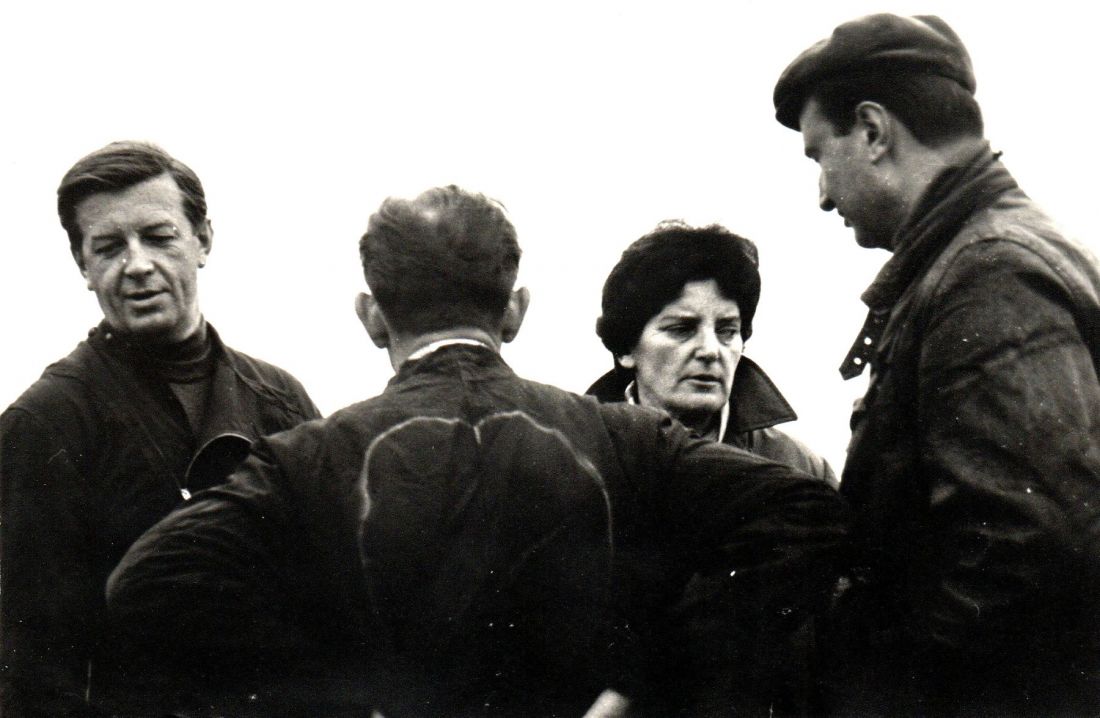 Zdjęcie po wyścigu w Puławach 1967, stoją od lewej: Zbigniew Sucharda, tyłem stoi Longin Bielak z widocznym śladem potu na plecach, Nina Paszkowska, Andrzej Zieliński. Zdjęcie z archiwum Zbigniewa i Joanny Suchardów