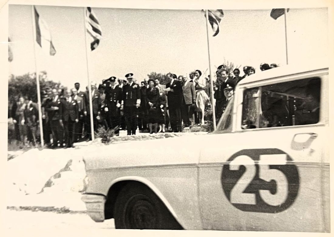 Rajd Acropolis 1958. Na rozdanie nagród załogi podjeżdżały samochodami. Ta tradycyjna forma uroczystego zakończenia rajdu Akropolu istnieje chyba do dzisiaj