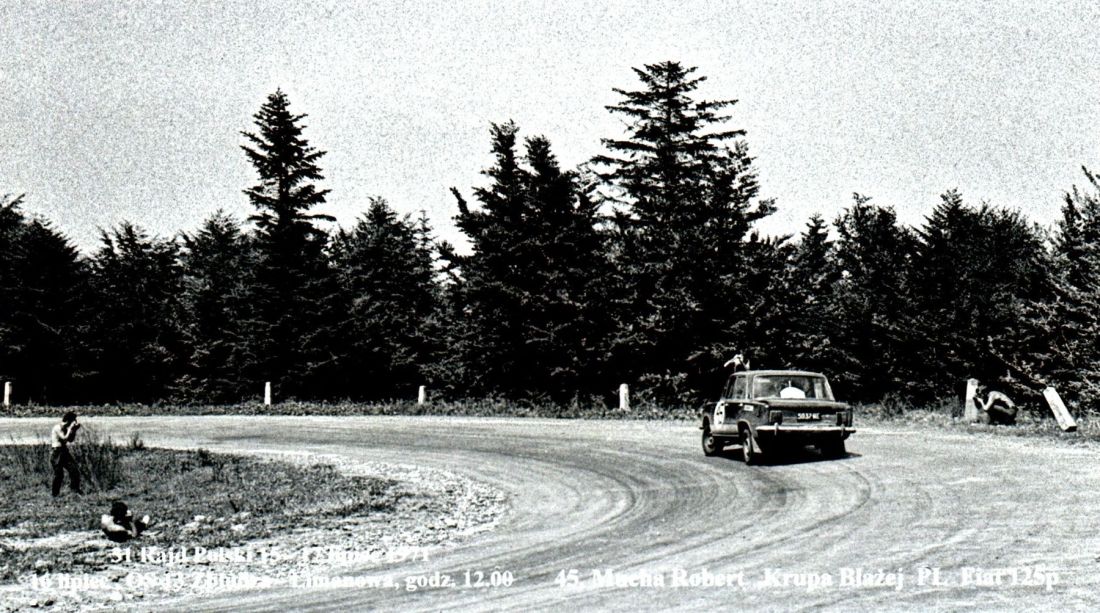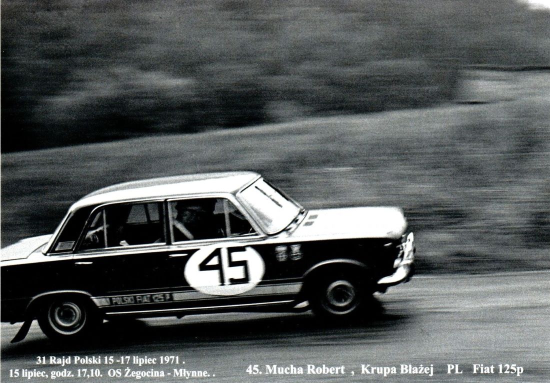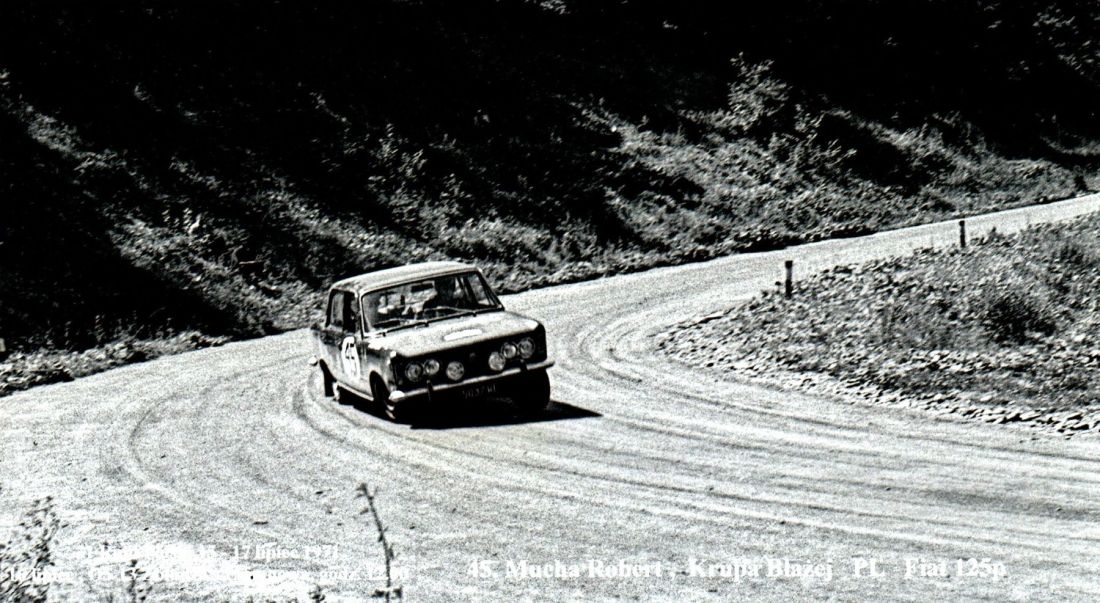 Na zdjęciu Władysław Domański startujący z Piotrem Dąbkowskim Fiatem 125p, zdjęcie z archiwum Władysława Domańskiego