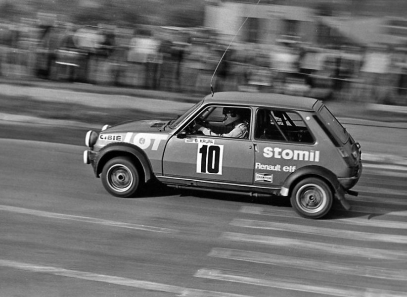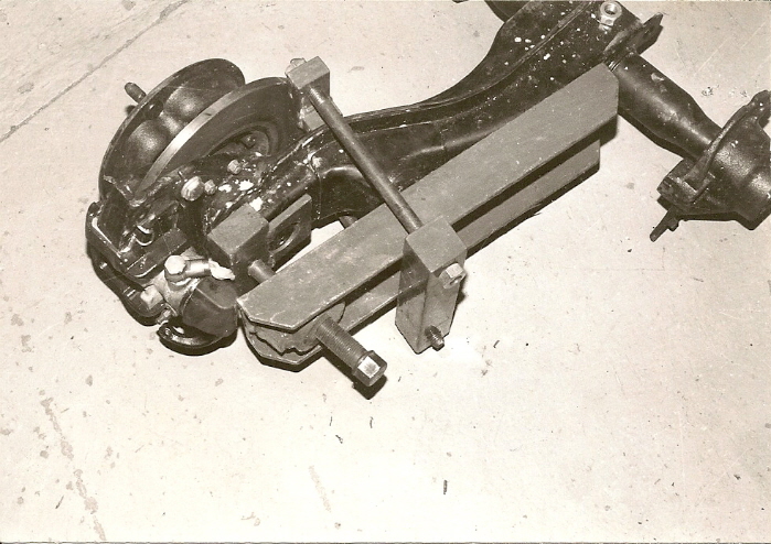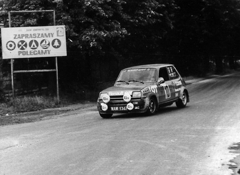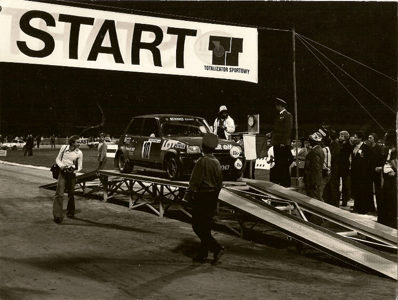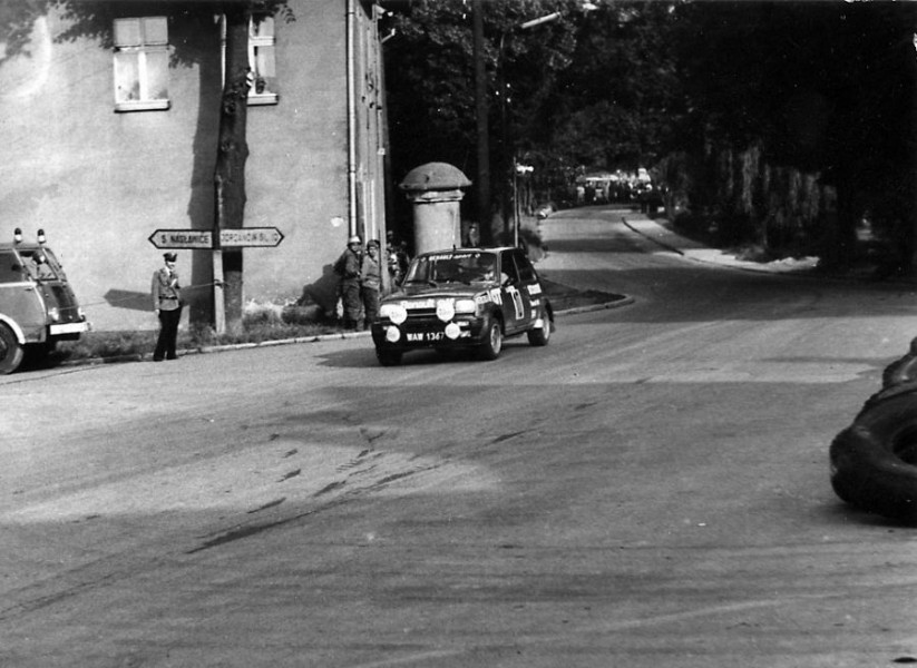 Po rajdzie dostałem z fabryki Renault zdjęcia "wspaniałego"przyrządu do prostowania tylnego wahacza.Natomiast mnie na mecie OS-u nr 41 odpadło lewe tylne koło wraz z połówką wahacza.Tego konstruktorzy nie przewidzieli.Wahacz w połowie długości, tam gdzie kończy się stabilizator na skutek ciągłego zginania się w prawo i w lewo pękł na całym obwodzie, jakby był z papieru.Idealnie odcięty.A myśmy początkowo myśleli, że to "kapeć".Niestety wymiana wahacza w tym miejscu nie była możliwa. I dalej na przyczepie...