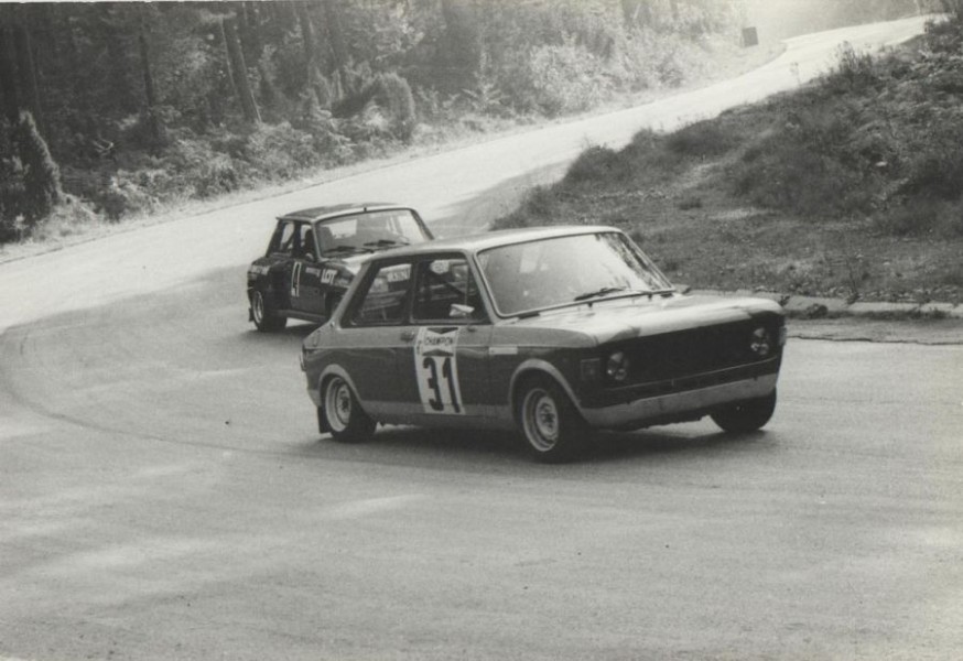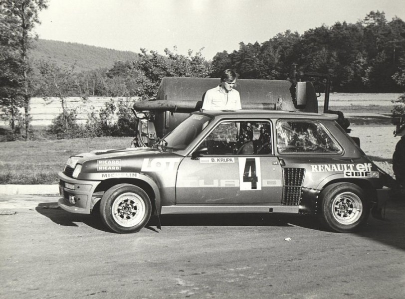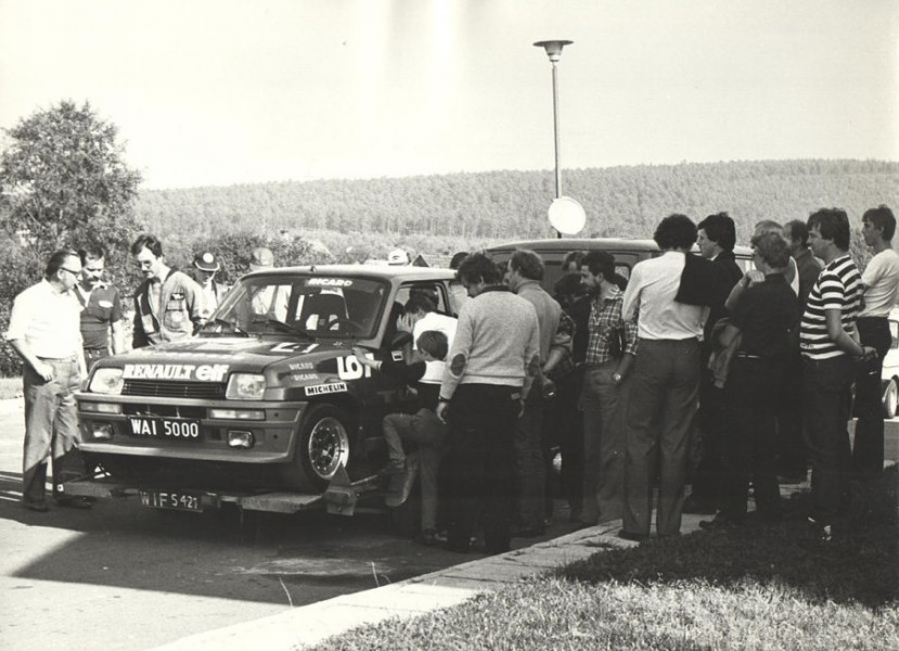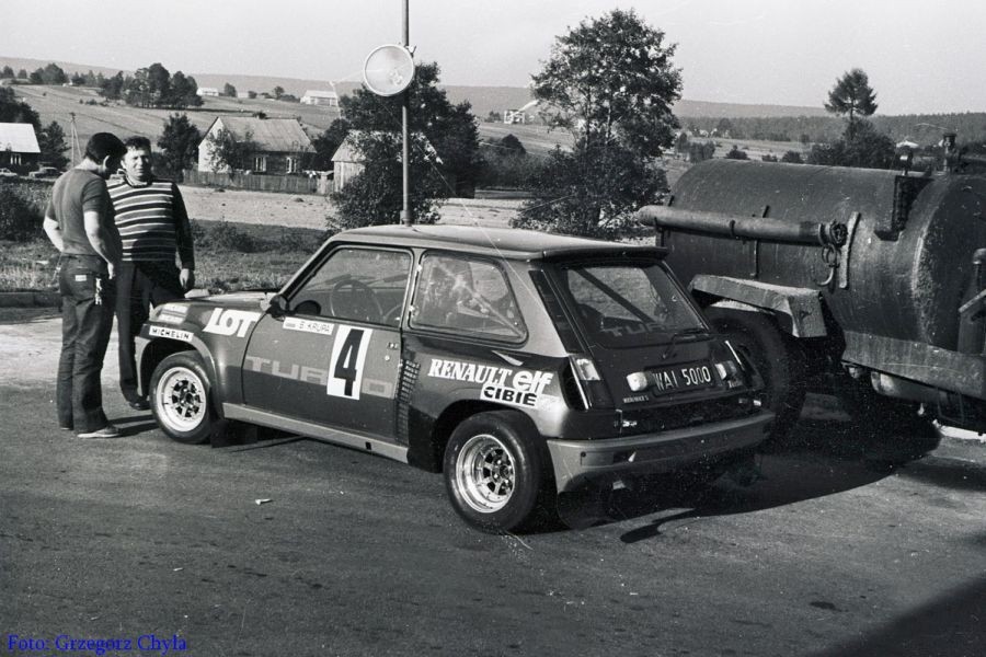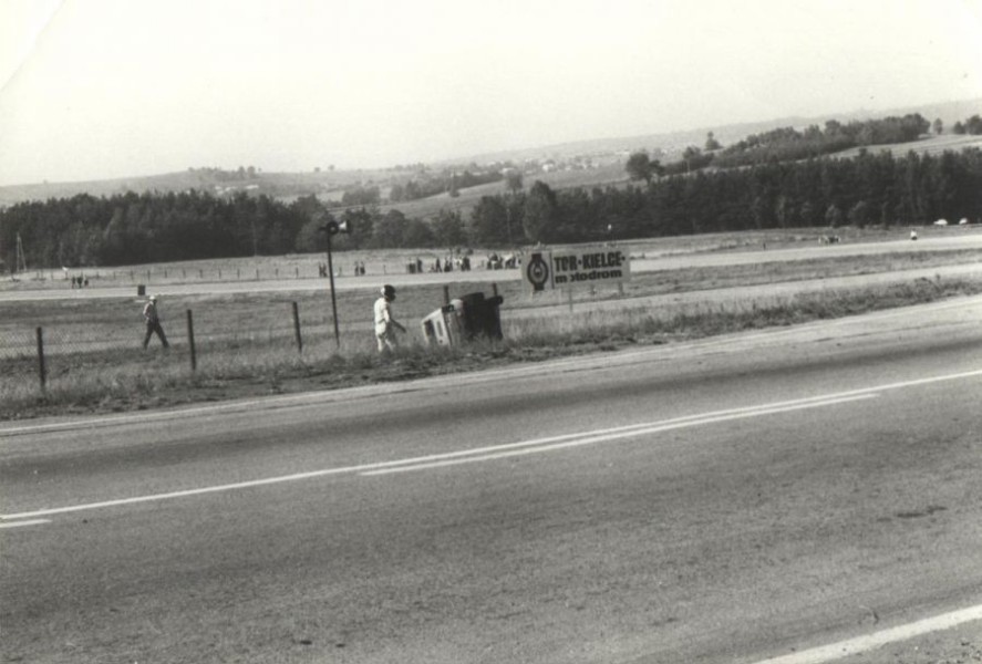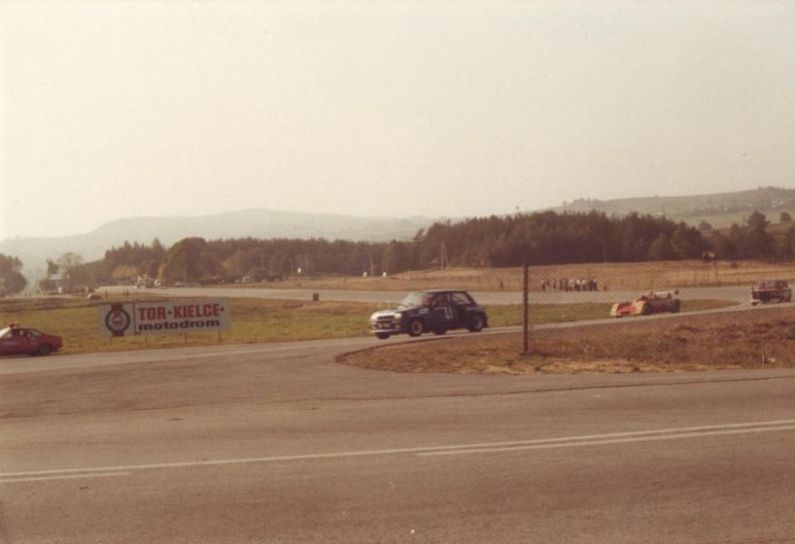 Tak wygladała część Toru Kielce w 1981 roku. Przed Renault 5 Turbo stoi mój mechanik - Bronisław Chojna, którego wszyscy znali jako ``Pana Bronka``. Autor zdjecia pan Grzegorz Chyła.
