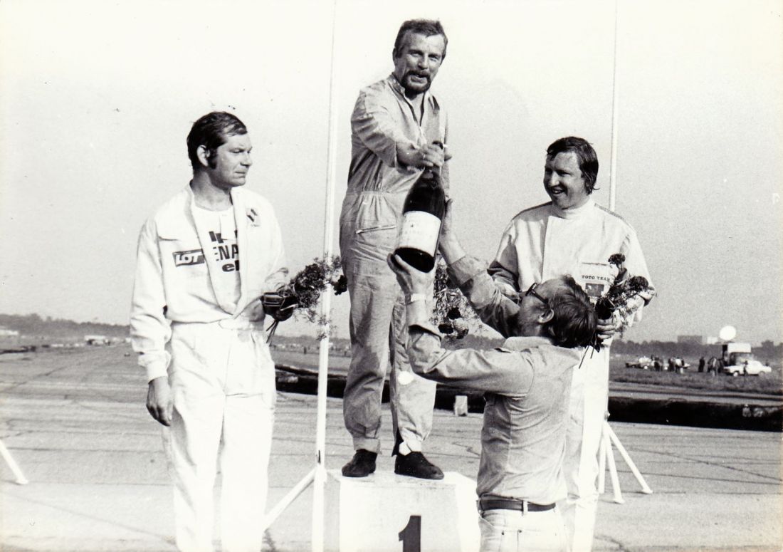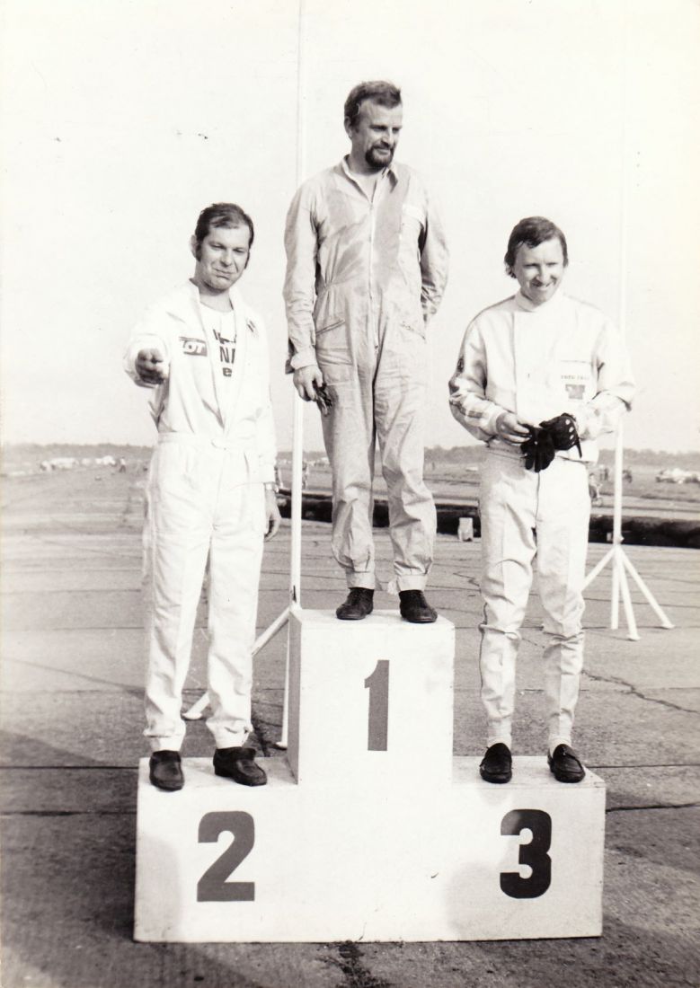 Po biegu Castrola. Tyłem stoi póżniejszy szef tej firmy w Polsce Marek Wachowski, w czapce LOT-u Władysław Paszkowski